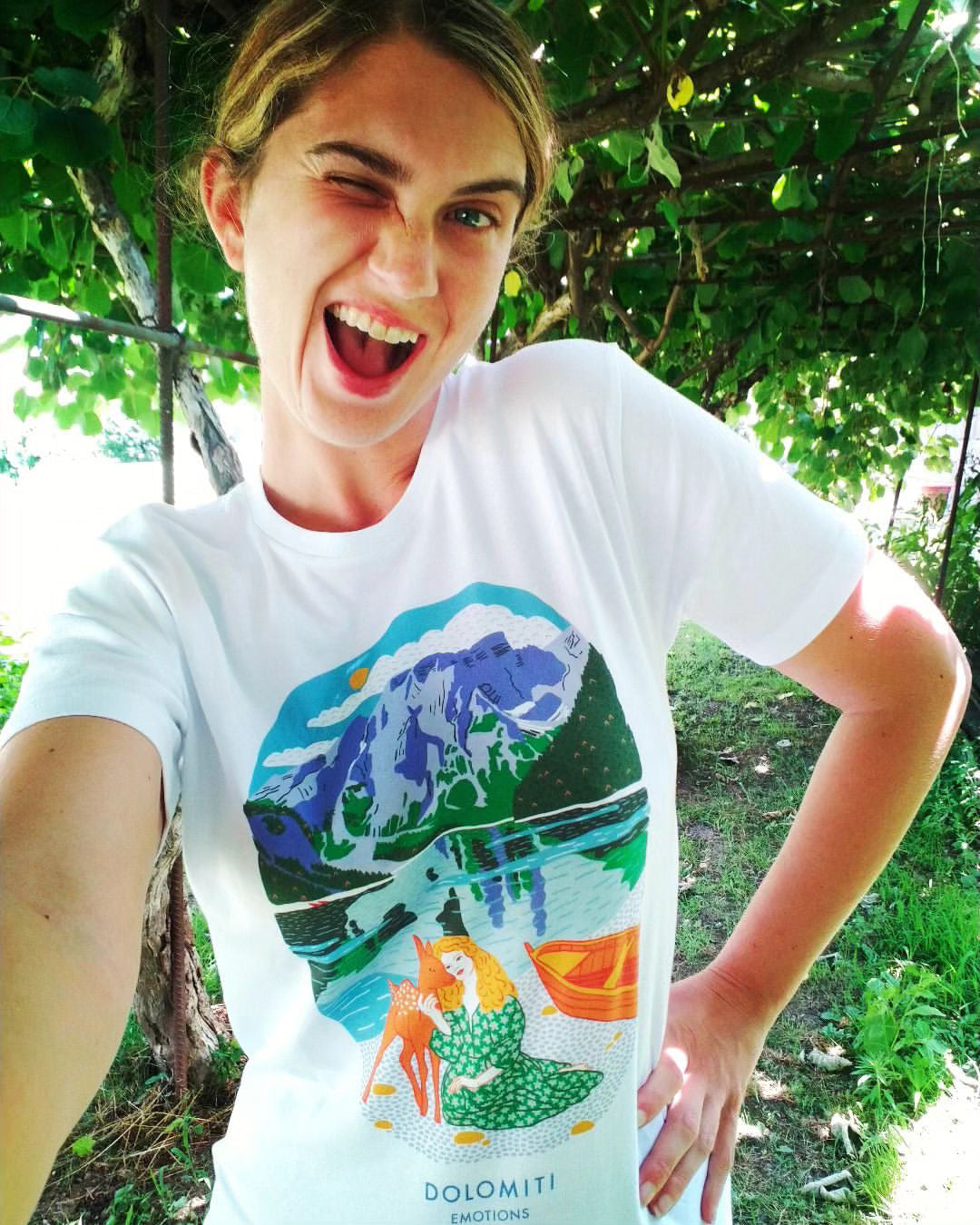 L'illustrazione sulla T-shirt del Lago di Braies è state disegnata da una illustratrice italiana che possiede uno stile artistico originale e ricercato, ideale per rappresentare questo luogo a dir poco prezioso.